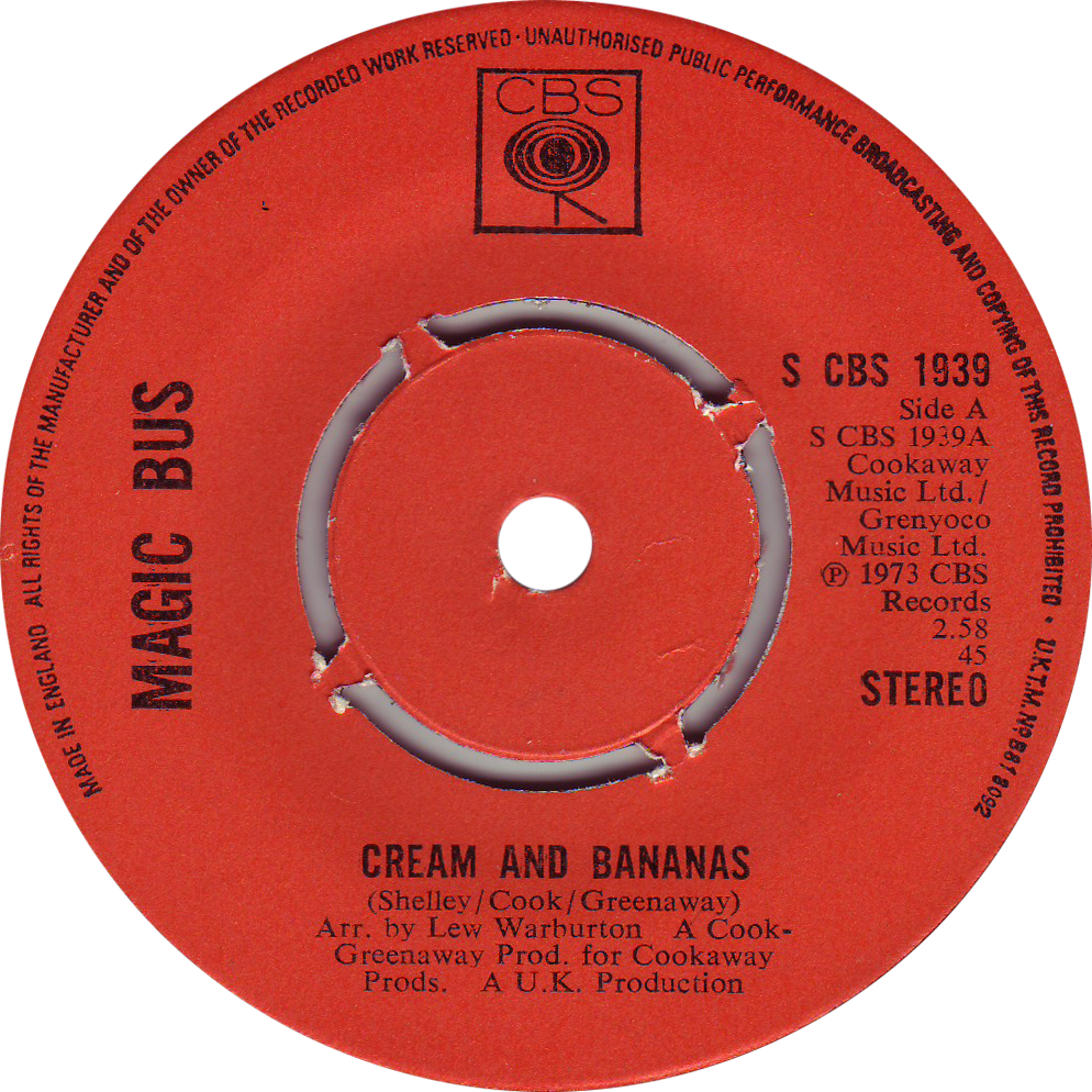 S CBS 1939 – Magic Bus “Cream And Bananas” 1973 Has a matrix stamp error: CBS 1936 is crossed out and the correct CBS 1939 stamped next to it. Share this: Click to email a link to a friend (Opens in new window) Email Click to share on Facebook (Opens in new window) Facebook Click to share on X (Opens in new window) X Like Loading...