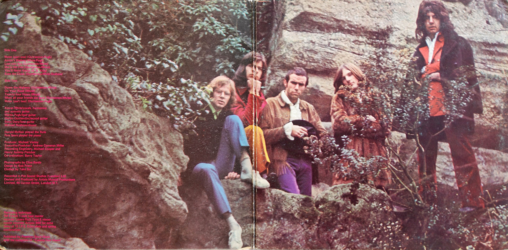 Unlaminated gatefold sleeve designed by Bob Priest, photographed by Clive Barda…and there’s even a credit for the clothes worn by the band…Take Six. Printed by Ernest J Day & Co. Ltd (credit on rear sleeve).