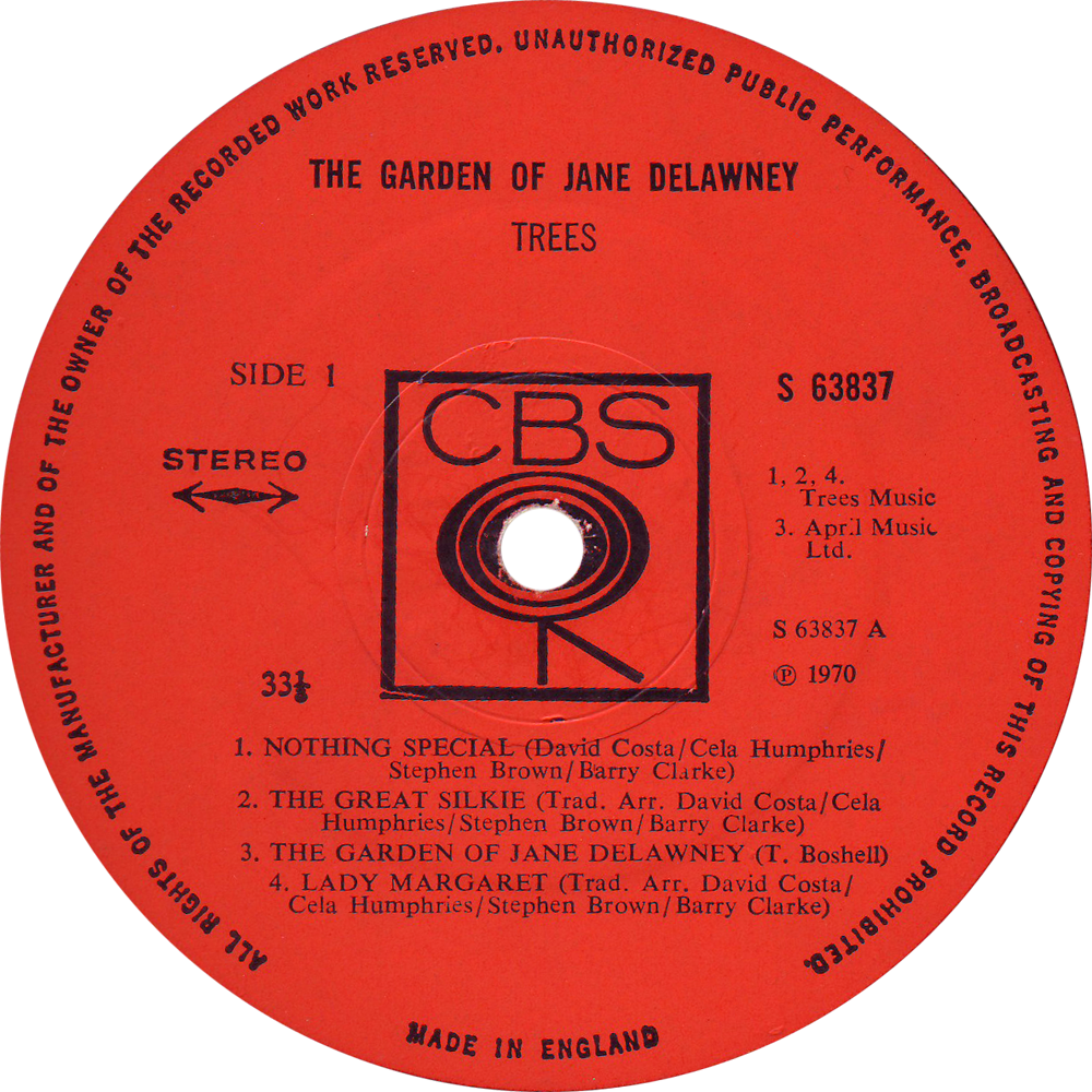 CBS 63837 – Trees “The Garden Of Jane Delawney” 1970 Sleeve notes: Non-gatefold sleeve. Share this: Click to email a link to a friend (Opens in new window) Email Click to share on Facebook (Opens in new window) Facebook Click to share on X (Opens in new window) X Like Loading...