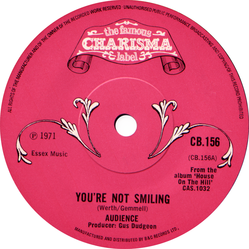 CB 156 – Audience “You’re Not Smiling” 1971 Stamped matrix: C B 1 5 6 A – 2 U C B 1 5 6 B – 1 U Share this: Click to email a link to a friend (Opens in new window) Email Click to share on Facebook (Opens in new window) Facebook Click to share on X (Opens in new window) X Like Loading...