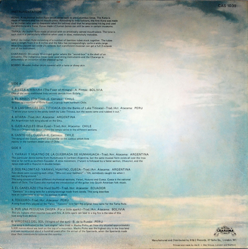 Unless you’re really into South American flute music then this is an album purely for completists! Another one of those quirky albums (like Gordon Turner’s Meditation, an earlier Charisma release) that just makes you ask “why?”. But for those wanting to complete their Charisma Pink Scroll collection, you’ll need this album. Just don’t pay too much for it!
