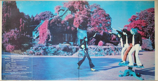 Gatefold sleeve, B&C Records credit (with no logo) on inner gatefold with printer’s credit: ‘Printed and made by the EJ Day Group, London and Bedford’. Inner gatefold photography is similar in style to Marcus Keef (several Vertigo album covers amongst others) but is more clumsily executed. Not sure about the band’s Nazi style salutes either.
