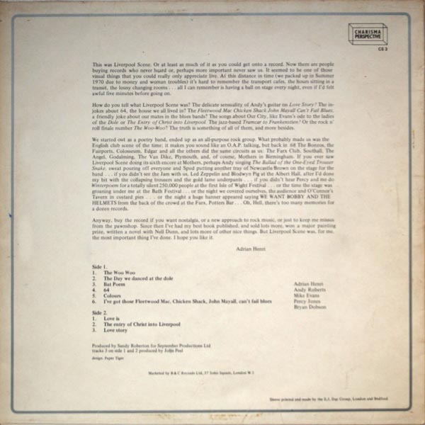 Single sided promotional flyer included with all 3 releases under the Charisma Perspective ‘banner’, advertising the LPs from The Nice, VdGG and Liverpool Scene at the retail price of £1.49, along with the full price albums in the back catalogue from the same artists at £2.08