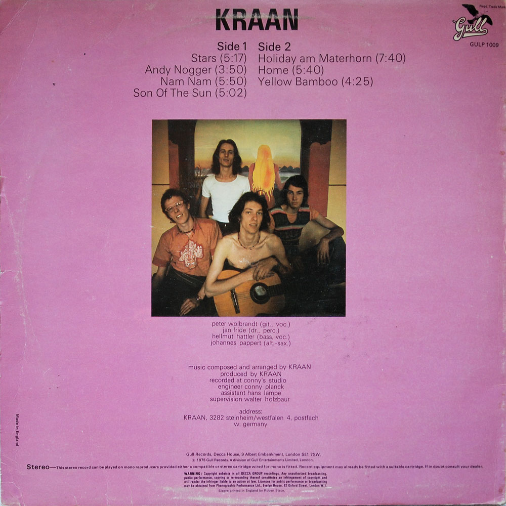 Non-gatefold sleeve, printed by Robert Stace. “Stereo” explanation runs horizontally across bottom edge of rear sleeve. “Made In England” runs vertically down left edge of rear sleeve.