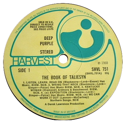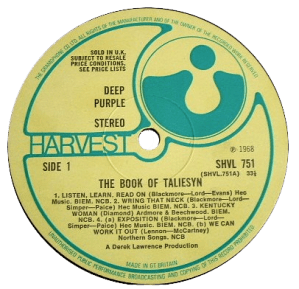 EMI launched its new subsidiary music label to compete with the demand for the new style of ‘progressive’ rock music. The first release in July 1969 was a UK issue of Deep Purple’s “Book Of Taliesyn” which had originally been released in the US on the Tetragrammaton label at the end of 1968. Deep Purple had originally been on EMI’s Parlophone label for their successful “Shades Of Deep Purple” LP so it made a logical sense both artistically and commercially to launch Harvest with a moderately well known act.