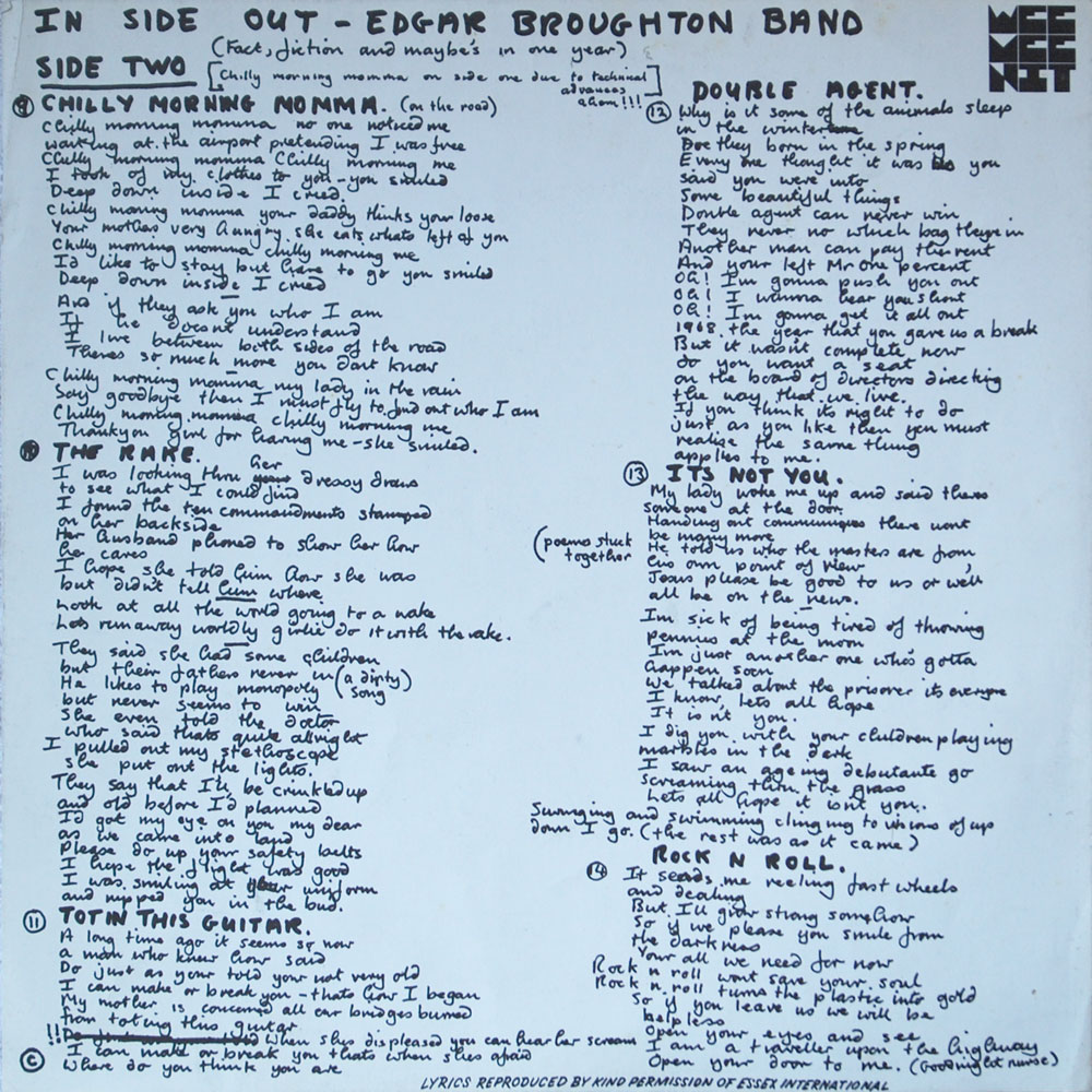 Gatefold sleeve, with die-cut ‘strips’ on inner gatefold revealing additional photos underneath. Open from the ‘back’ as a gatefold to reveal the other gatefold spread, song titles and credits. Designed and photographed by Hipgnosis. No printer credit. No date code.