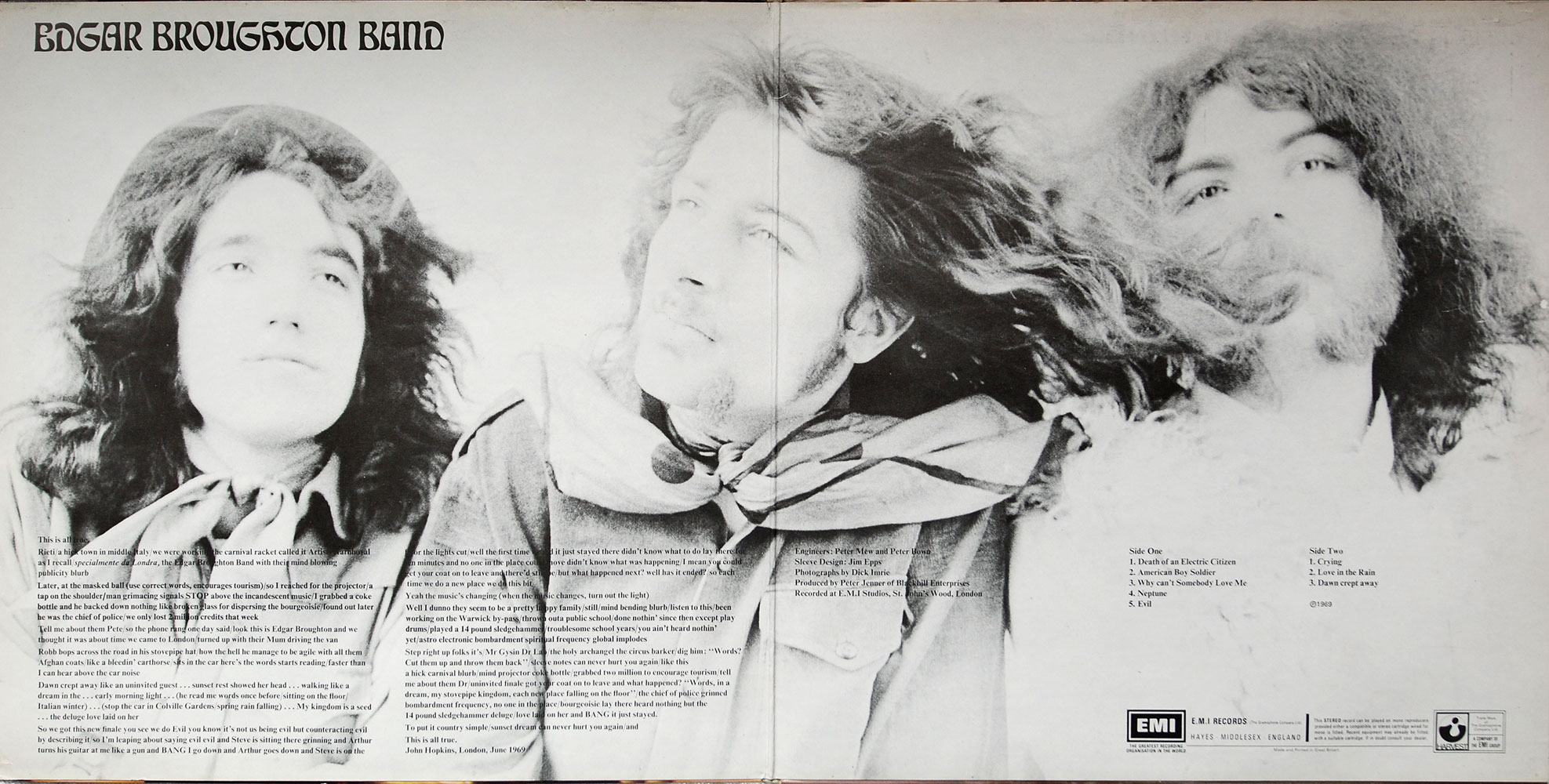 Laminated gatefold sleeve, date code 6907 (July, 1969) and printer’s credit on rear sleeve: