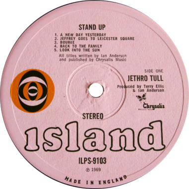 1st press is rough pink label with orange and black graphic design and Chrysalis logo.