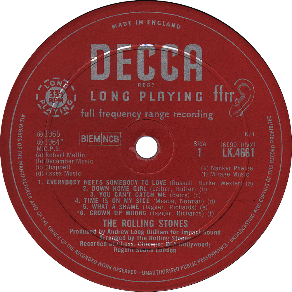 Unboxed red Decca labels with silver print. Note ridge on label.