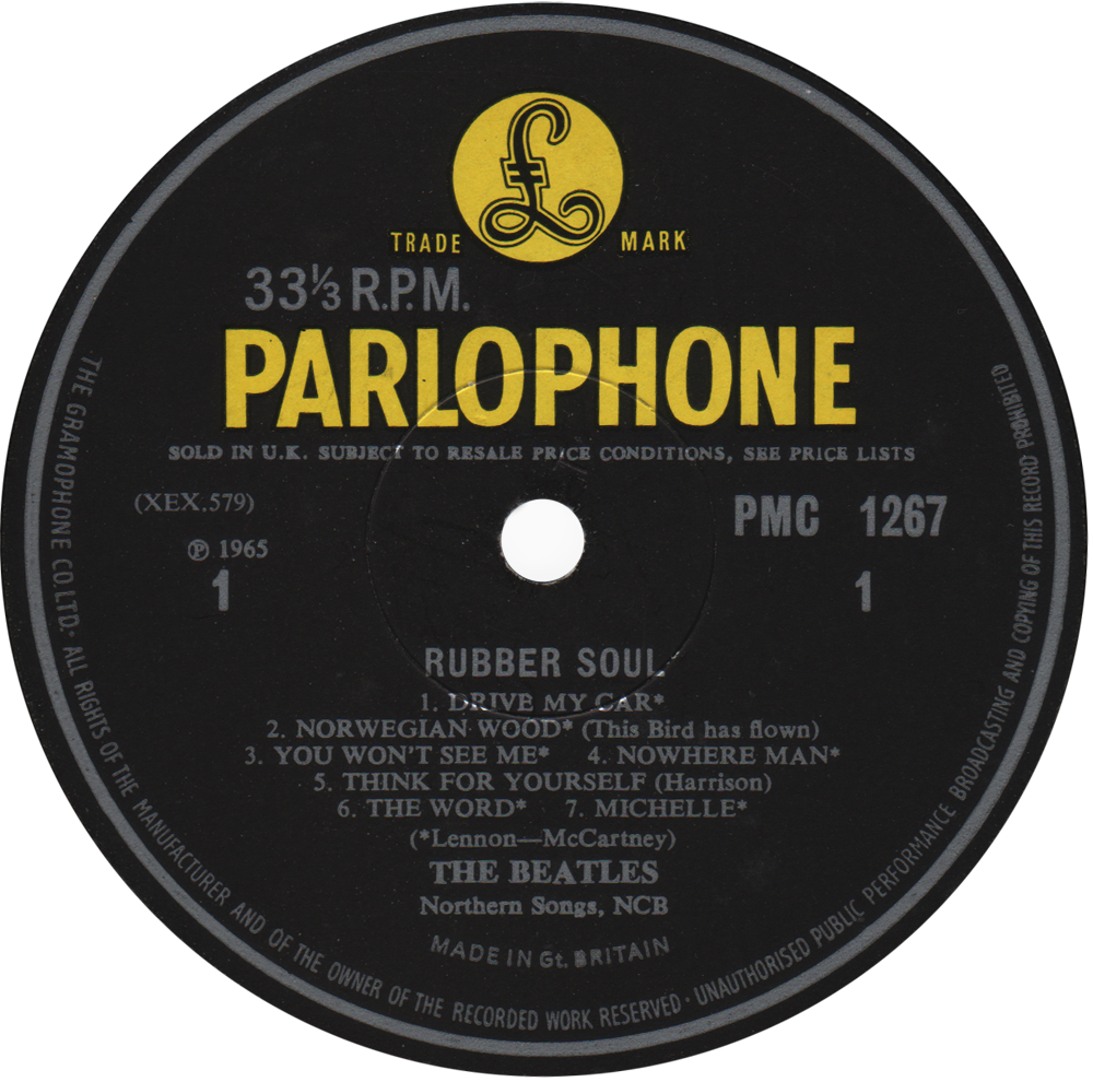 Yellow and black Parlophone label with ‘SOLD IN UK SUBJECT TO RESALE PRICE CONDITIONS, SEE PRICE LISTS’