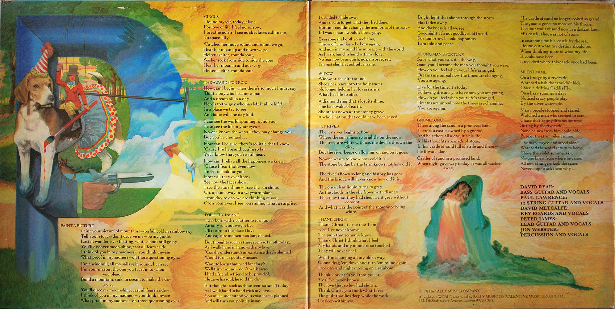 Gatefold sleeve with printer’s credit on rear sleeve: “Sleeve printed and made in England by MacNeill Press Ltd., London. SE1”