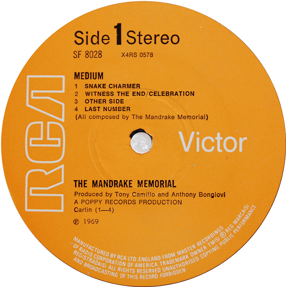 RCA SF8028 – The Mandrake Memorial “Medium” 1969 Sleeve notes: Laminated front sleeve, printed by Robert Stace (credit on rear). Matrix: X4RS 0578 1 X4RS 0579 1 Share this: Click to email a link to a friend (Opens in new window) Email Click to share on Facebook (Opens in new window) Facebook Click to share on X (Opens in new window) X Like Loading...