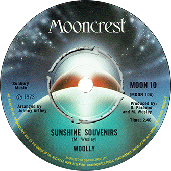 MOON 10 – Woolly “Sunshine Souvenirs” 1973 Released 27th July 1973Stamped matrixMOON 10 A-1UMOON 10 B-1U Share this: Click to email a link to a friend (Opens in new window) Email Click to share on Facebook (Opens in new window) Facebook Click to share on X (Opens in new window) X Like Loading...