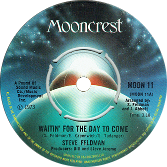 MOON 11 – Steve Feldman “Waitin’ For The Day To Come” 1973 Released 10th August 1973Stamped matrixMOON 11 A-1UMOON 11 B-1U Share this: Click to email a link to a friend (Opens in new window) Email Click to share on Facebook (Opens in new window) Facebook Click to share on X (Opens in new window) X Like Loading...