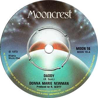 MOON 16 – Donna Marie Newman “Daddy” 1973 Released 26th October 1973Stamped matrixMOON 16 A-1U MOON 16 B-1U Share this: Click to email a link to a friend (Opens in new window) Email Click to share on Facebook (Opens in new window) Facebook Click to share on X (Opens in new window) X Like Loading...