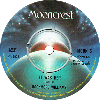 MOON 6 – Rockmore Williams “It Was Her” 1973 Released 11th May 1973Stamped matrixMOON 6 A-1UMOON 6 B-1U Share this: Click to email a link to a friend (Opens in new window) Email Click to share on Facebook (Opens in new window) Facebook Click to share on X (Opens in new window) X Like Loading...