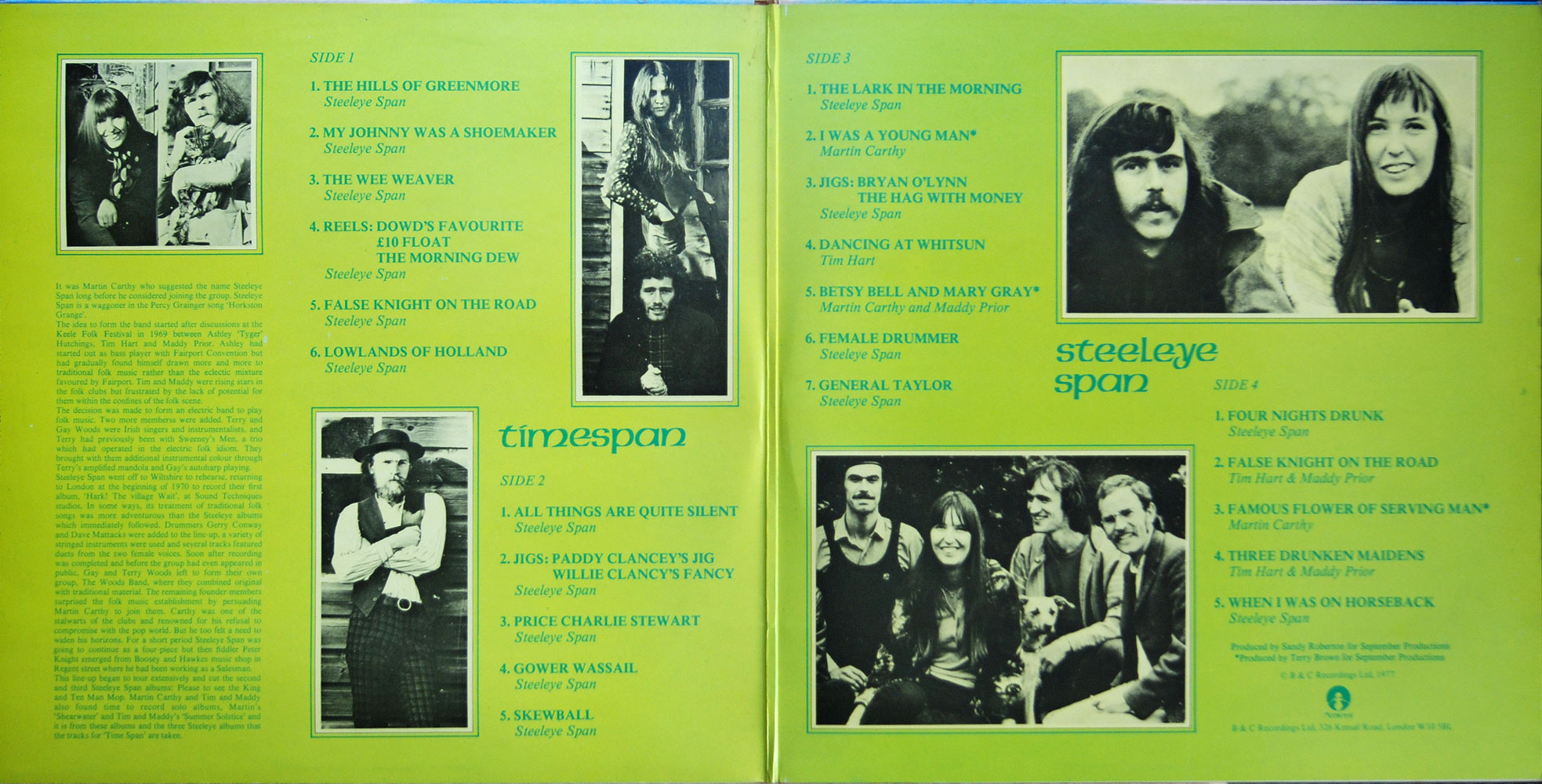 Gatefold sleeve, designed and illustrated by Norman Beckett (same as the Atomic Rooster “Home To Roost” 2LP set CDR2 although that sleeve design is uncredited…). “Printed in England” on rear, no printer’s credit. B&C Records credit on inner gatefold.