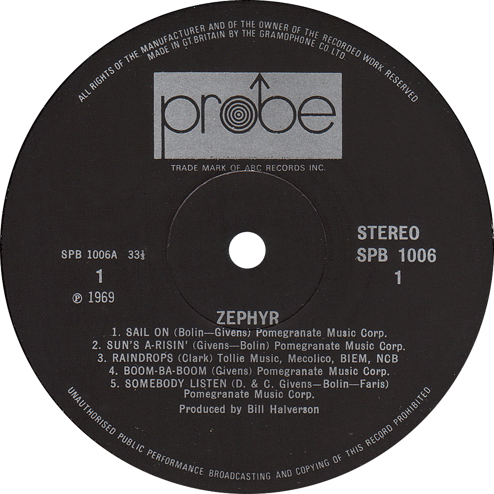 SPB 1006 – Zephyr “Zephyr” 1969 Sleeve notes: Laminated flipback sleeve printed by Garrod & Lofthouse, date code of 7005 (May 1970). Label notes: Black and silver label with “MADE IN GT. BRITAIN BY THE GRAMOPHONE CO. LTD.” Stamped matrix: SPB 1006 A-1 SPB 1006 B-1 Share this: Click to email a link to a friend (Opens in new window) Email Click to share on Facebook (Opens in new window) Facebook Click to share on X (Opens in new window) X Like Loading...