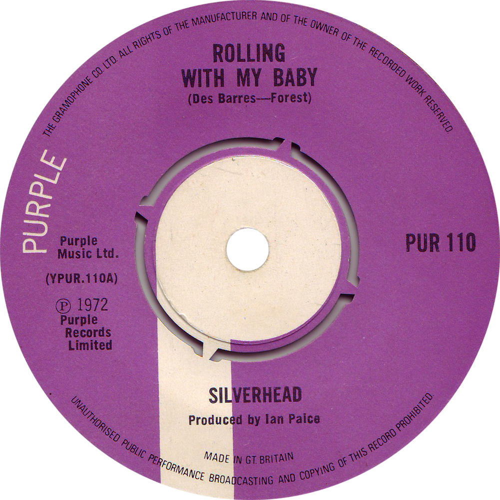 PUR 110 – Silverhead “Rolling With My Baby” 1972 Label notes: “THE GRAMOPHONE CO LTD” around label perimeter. Share this: Email a link to a friend (Opens in new window) Email Share on Facebook (Opens in new window) Facebook Share on X (Opens in new window) X Like Loading...