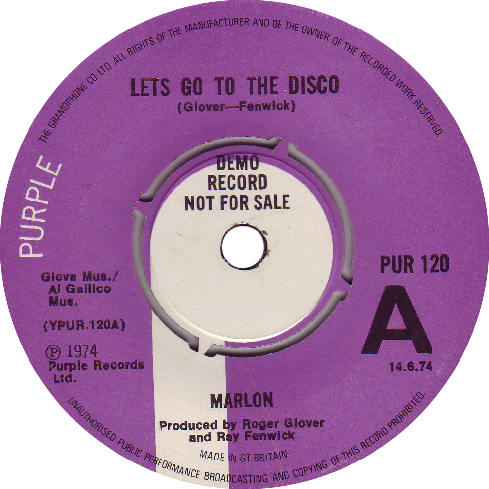 PUR 120 – Marlon “Let’s Go To The Disco” 1974 Label notes: “THE GRAMOPHONE CO LTD” around label perimeter. Demo release date of 14.6.74 Share this: Click to email a link to a friend (Opens in new window) Email Click to share on Facebook (Opens in new window) Facebook Click to share on X (Opens in new window) X Like Loading...