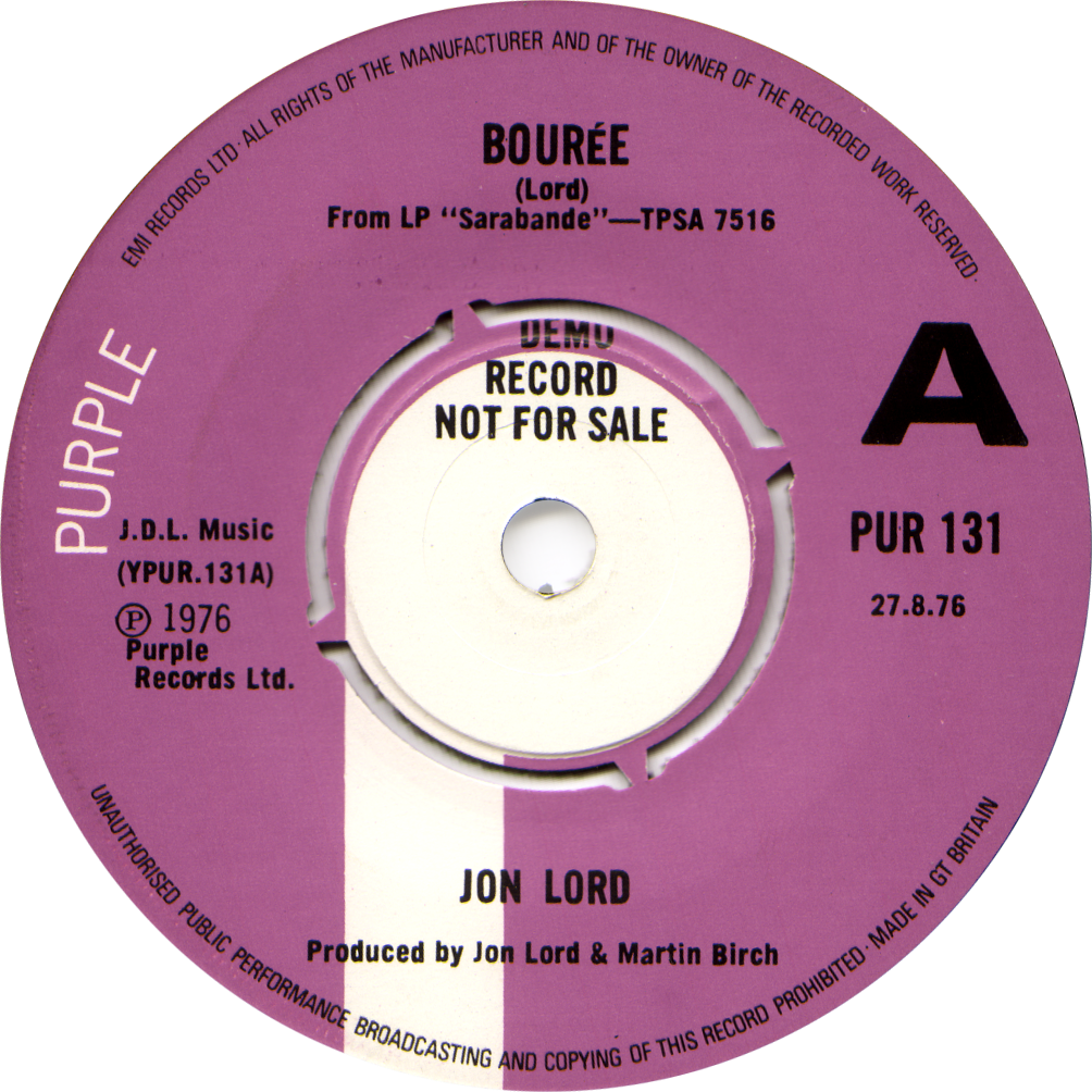PUR 131 – Jon Lord “Bourée” 1976 Demo release date of 27.8.76 Share this: Email a link to a friend (Opens in new window) Email Share on Facebook (Opens in new window) Facebook Share on X (Opens in new window) X Like Loading...