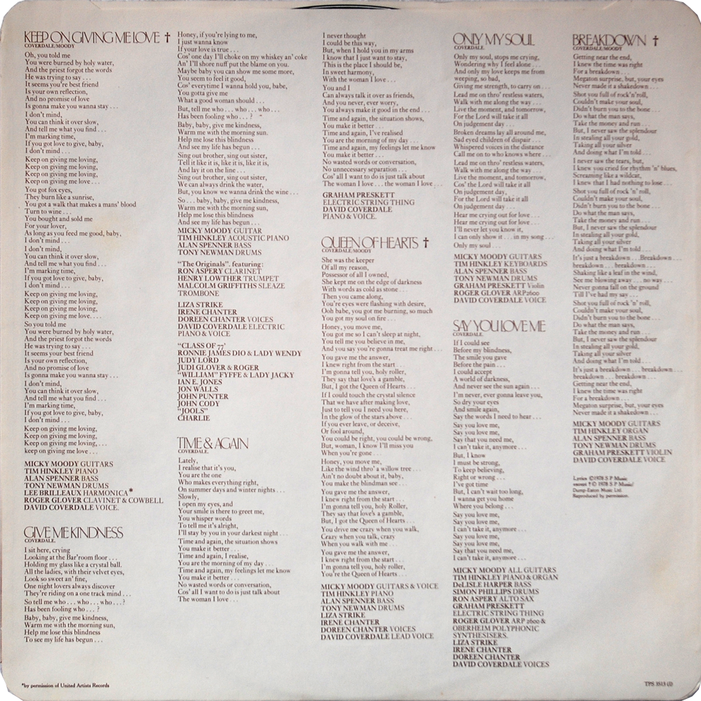 Textured non-gatefold sleeve. Printer’s credit and date code 7803 (March 1978) on rear sleeve. “Garrod & Lofthouse Ltd”. Original sleeve has “Made and printed in Great Britain” below the EMI Records address bottom left corner, reissue has “Country of manufacture of record as stated on record label” and a date code of 8202. Reissue sleeve is smooth and glossy, not textured like the original.