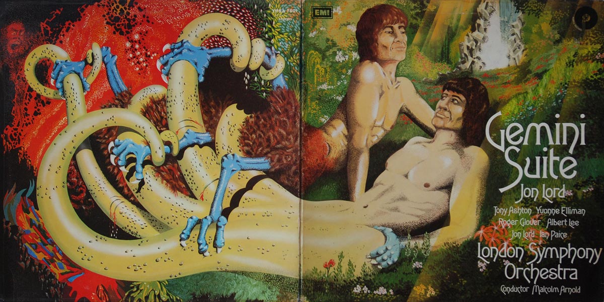 A slightly disturbing illustration makes up the outer cover, with two half-man, half-animal fantasy figures intertwined in semi erotic embrace – very odd!