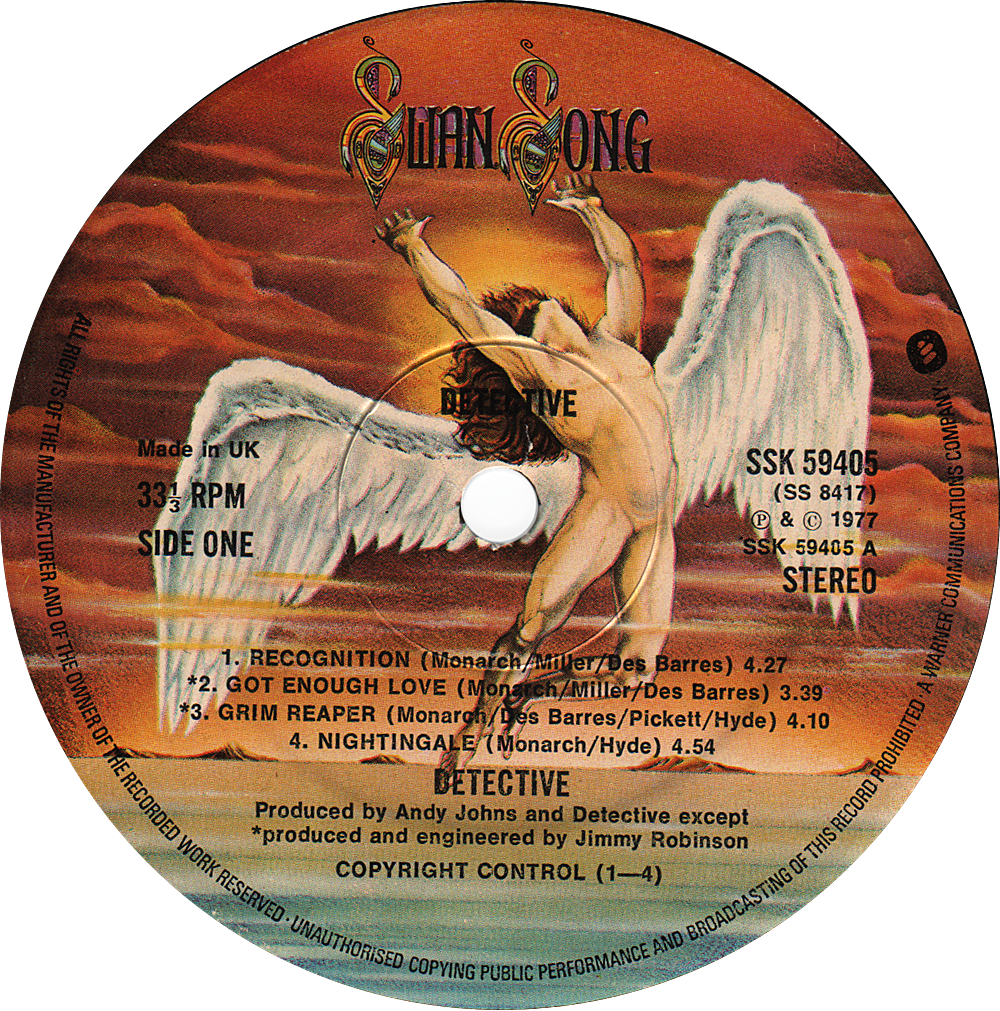 SSK 59405 – Detective “Detective” 1977 Sleeve notes: Non-gatefold sleeve. Printed and made by Gothic Print Finishers Ltd. Label notes: ‘Made in UK’ Share this: Click to email a link to a friend (Opens in new window) Email Click to share on Facebook (Opens in new window) Facebook Click to share on X (Opens in new window) X Like Loading...