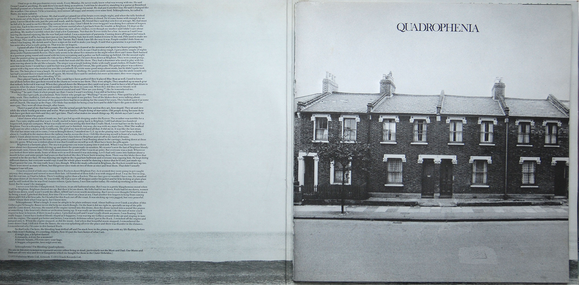 Gatefold sleeve with stapled in 48pp lyric and photo booklet. Printed by Euro-Albums Holland B.V. Later copies are printed by Howards Printers Ltd. The overprinted Howards credit has a paler background than the rest of the light grey page so you can see how it looks ‘stuck on top of’ the original artwork.