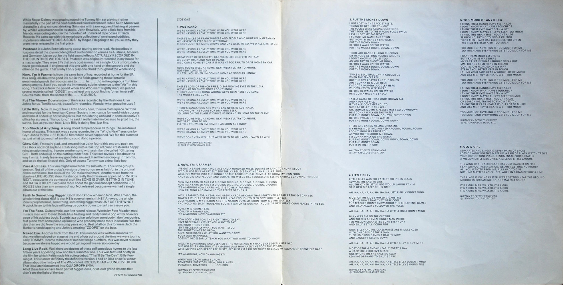 Comes with a 4 page gatefold lyric ‘booklet’: