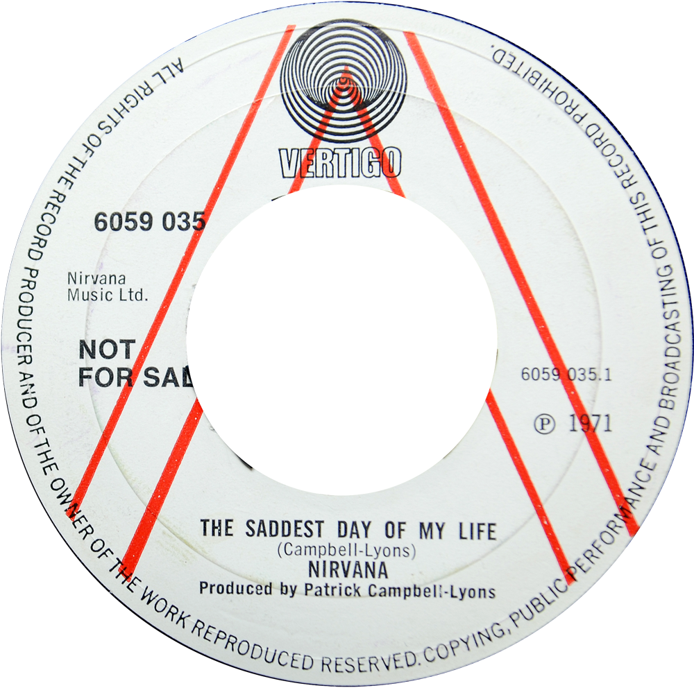 6059 035 – Nirvana “The Saddest Day Of My Life” 1971 Released 5th March 1971. Matrix: 6059035 1F//1 1 1 1 6059035 2F//1 1 1 3 Share this: Click to email a link to a friend (Opens in new window) Email Click to share on Facebook (Opens in new window) Facebook Click to share on X (Opens in new window) X Like Loading...