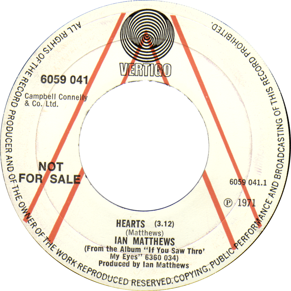 6059 041 – Ian Matthews “Hearts” 1971 Matrix: 6059041 1F//1 420 1 2 1 F 6059041 2F//1 420 1 1 2 Share this: Click to email a link to a friend (Opens in new window) Email Click to share on Facebook (Opens in new window) Facebook Click to share on X (Opens in new window) X Like Loading...