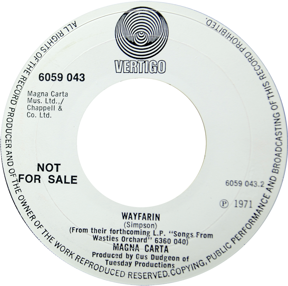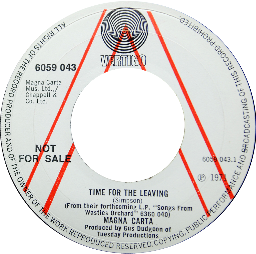 6059 043 – Magna Carta “Time For The Leaving” 1971 Demo version (above) Outline red ‘A’ on side 1. Matrix: 6059043 1F//1 420 1 1 3 6059043 2F//1 420 1 1 04 1 Share this: Email a link to a friend (Opens in new window) Email Share on Facebook (Opens in new window) Facebook Share on X (Opens in new window) X Like Loading...