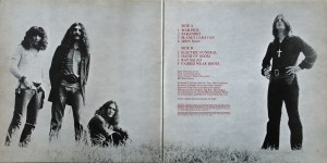 Gatefold sleeve designed and photographed by Marcus Keef. Originally to be titled “War Pigs” this was changed at the last minute to avoid offending the US market due to their ongoing involvement in the Vietnam war. The original title makes more sense with Keef’s cover concept…sleeve is unlaminated on 1st pressing. Note the credit to Jim Simpson/Big Bear Managament on inner gatefold – this was immediately withdrawn as soon as it was issued due to contractual disputes between the band and Big Bear. See the reissued version next to the original below.