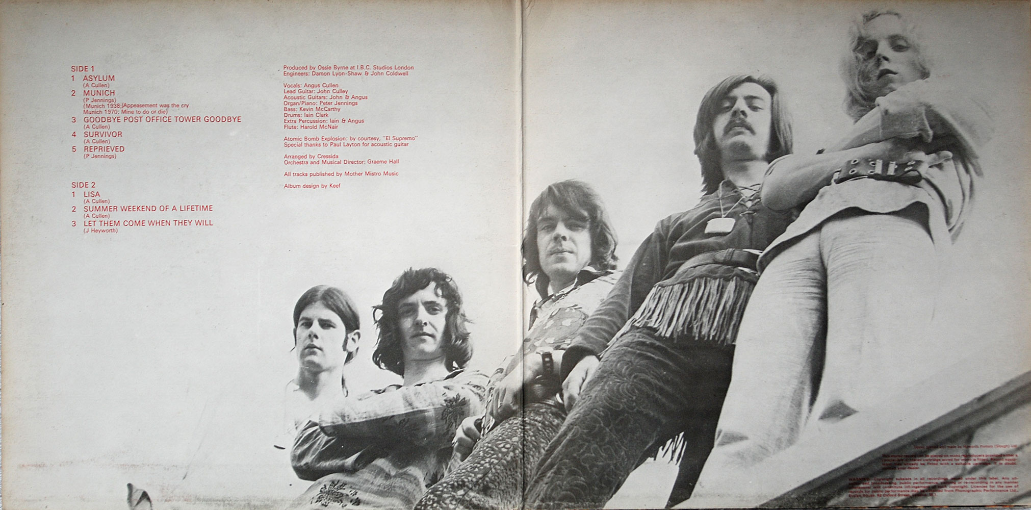 Matt gatefold sleeve designed and photographed by Marcus Keef. Suitably surreal, as we’d expect from Keef. No ‘false colour’ photography on this concept and sadly the back cover is simply a mirror image of the front. Striking though! Printer’s credit on inner gatefold: