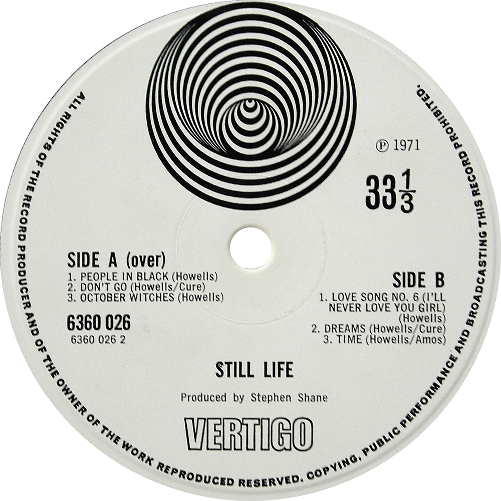 Large swirl above spindle, VERTIGO below spindle. No known reissues.