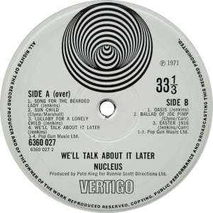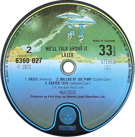 Large swirl above spindle, VERTIGO below spindle. Reissued on Spaceship label.