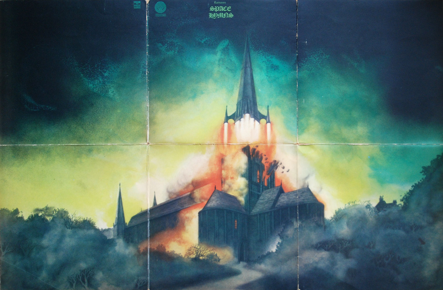 6 fold out poster sleeve designed by Roger Dean and printed by Howards Printers Ltd.