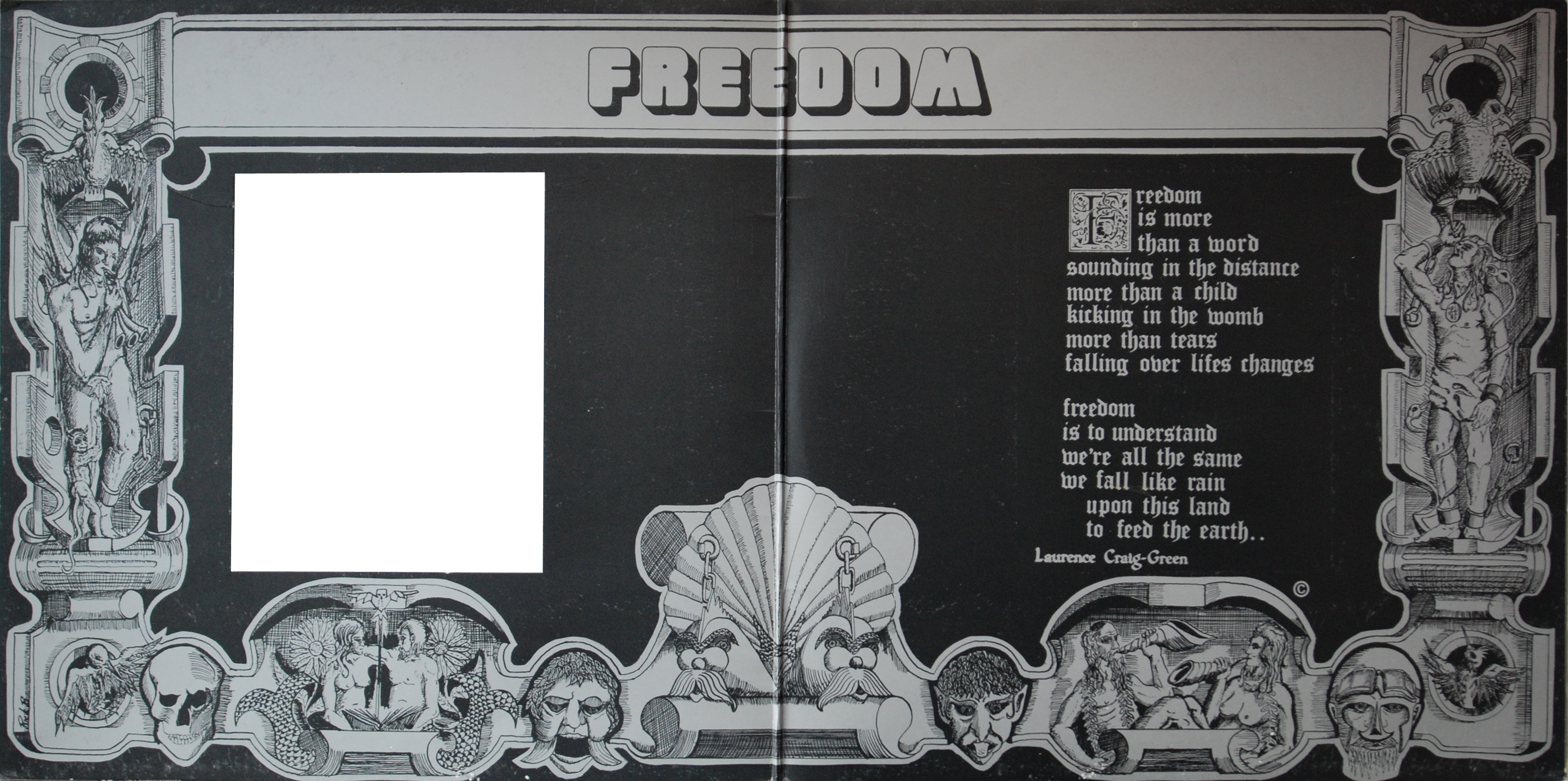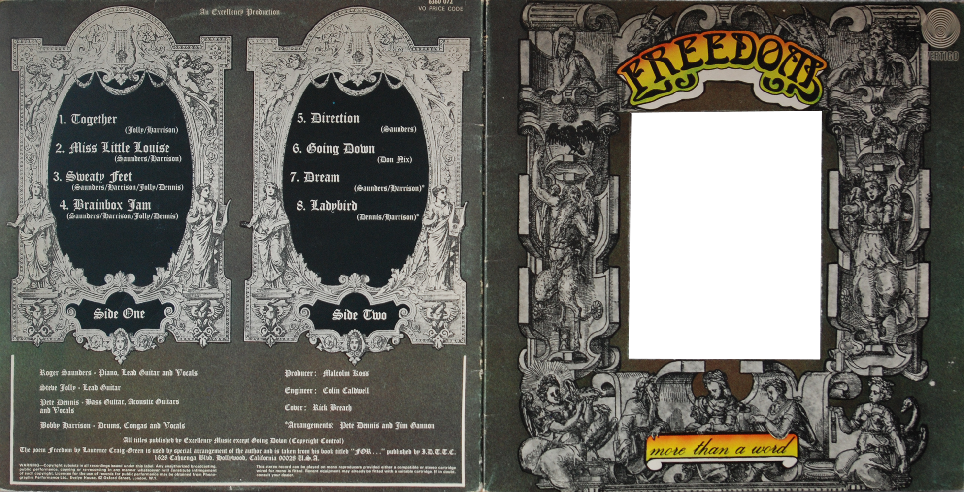Gatefold sleeve with die cut window in front cover. Designed by Rick Breach. No printer’s credit.