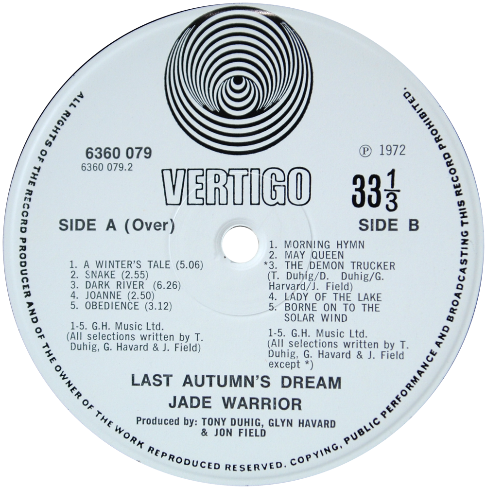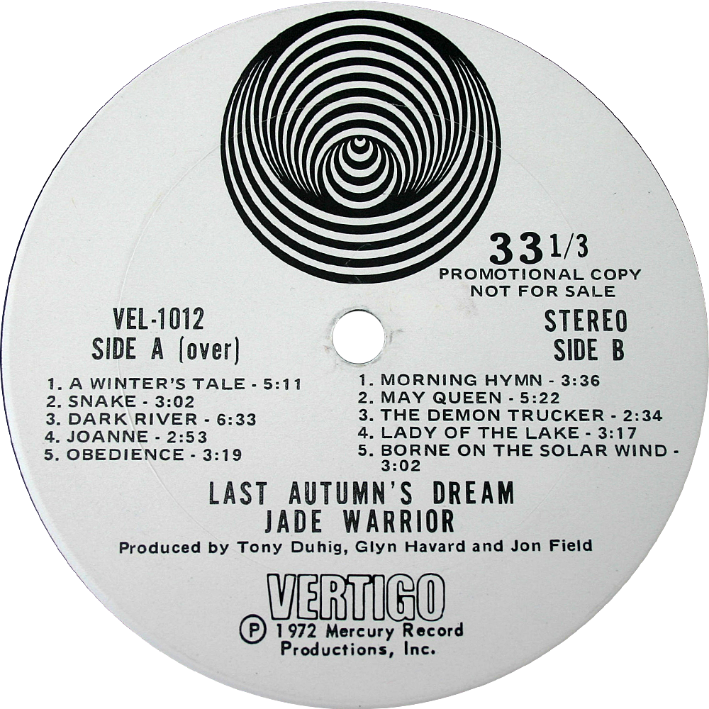 Small swirl and VERTIGO above spindle. No known reissues.