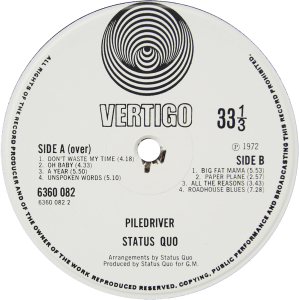 Small swirl with VERTIGO above spindle. Reissued on the Spaceship label.