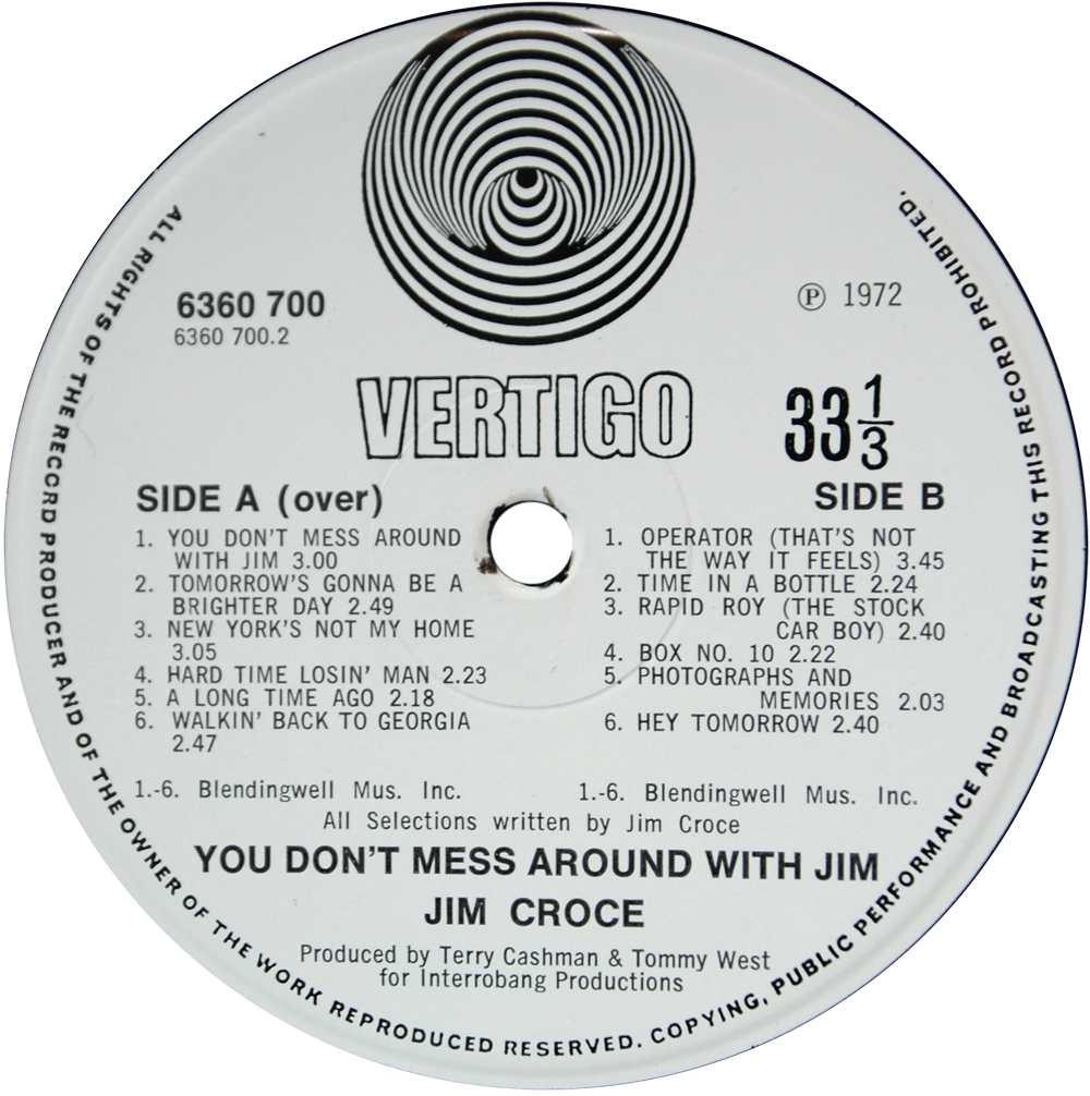 Small swirl label with VERTIGO above spindle. Reissued on spaceship labels.