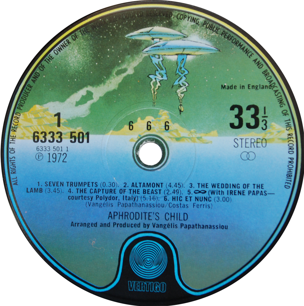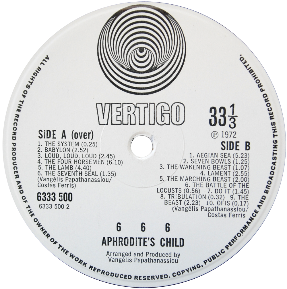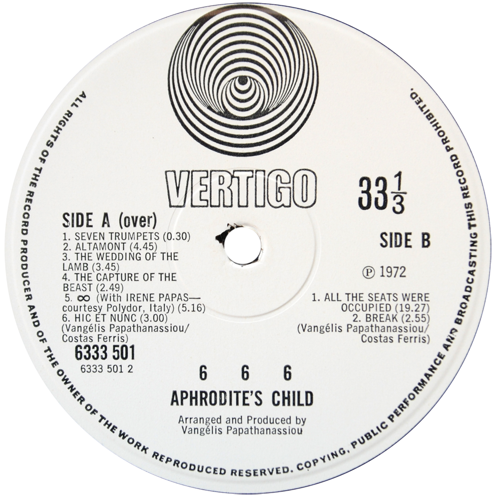 Catalogue numbers of the discs are 6333 500/501. Small swirl labels with VERTIGO above spindle. Reissued on spaceship labels.