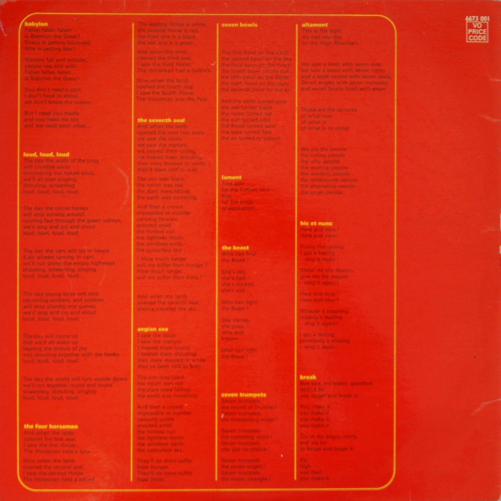 Laminated gatefold sleeve with catalogue number of 6673 001 (with VO Price Code box on rear sleeve – German printed sleeves are common and do not have the VO Price Code box). Inner gatefold carries the usual Copyright warning statement (German version does not and mentions ‘Published by SDRM’ and also mentions ‘Printed in Germany). UK version has no printer’s credit.
