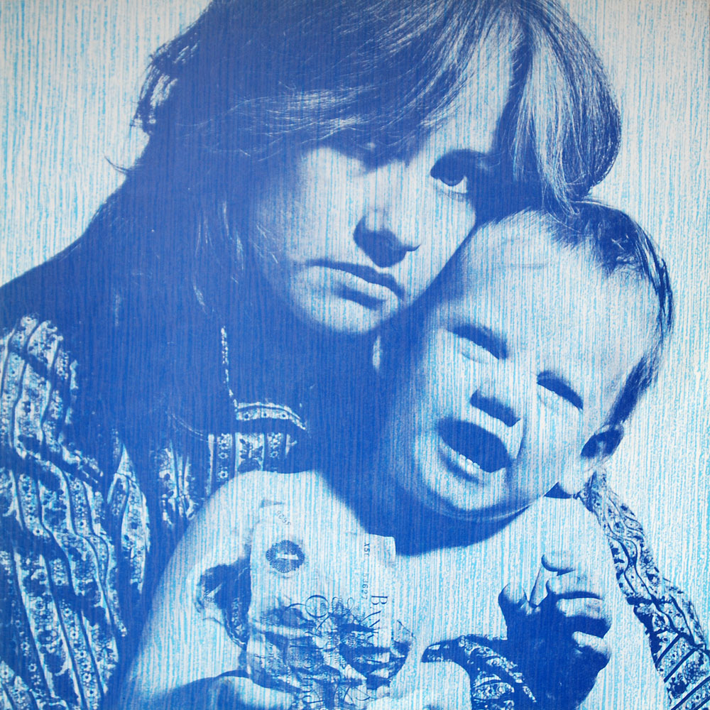 Non gatefold, die cut/punched holes into front and rear cover to allow colour/pattern of insert to show through. With 4 page gatefold lyric insert.