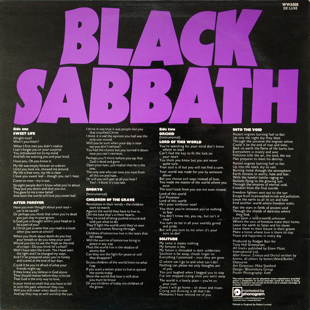 WWA008 – Black Sabbath “Master Of Reality” 1971 – reissued 1974 Sleeve notes: non-gatefold sleeve, glossy finish, ‘Printed in England by Robor Ltd’ on rear sleeve Share this: Click to email a link to a friend (Opens in new window) Email Click to share on Facebook (Opens in new window) Facebook Click to share on X (Opens in new window) X Like Loading...